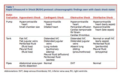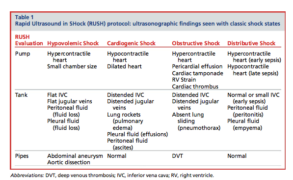 By going through the RUSH exam in a stepwise fashion, you will be able to identify any emergent conditions which is causing shock, and the type of shock it is: