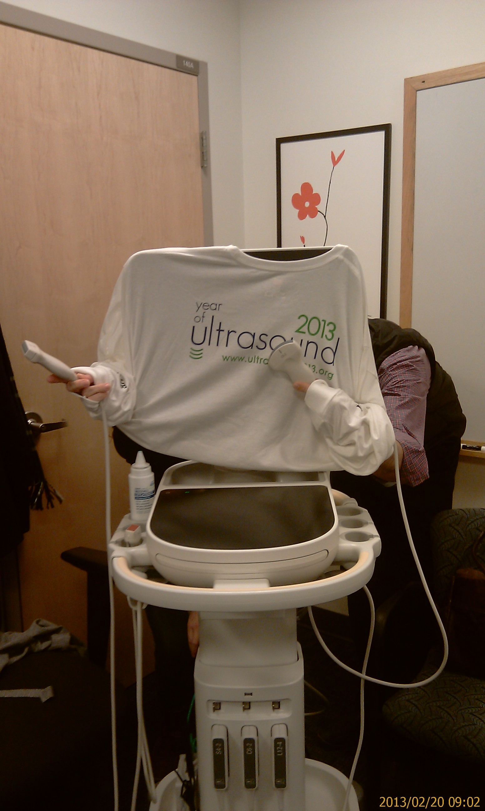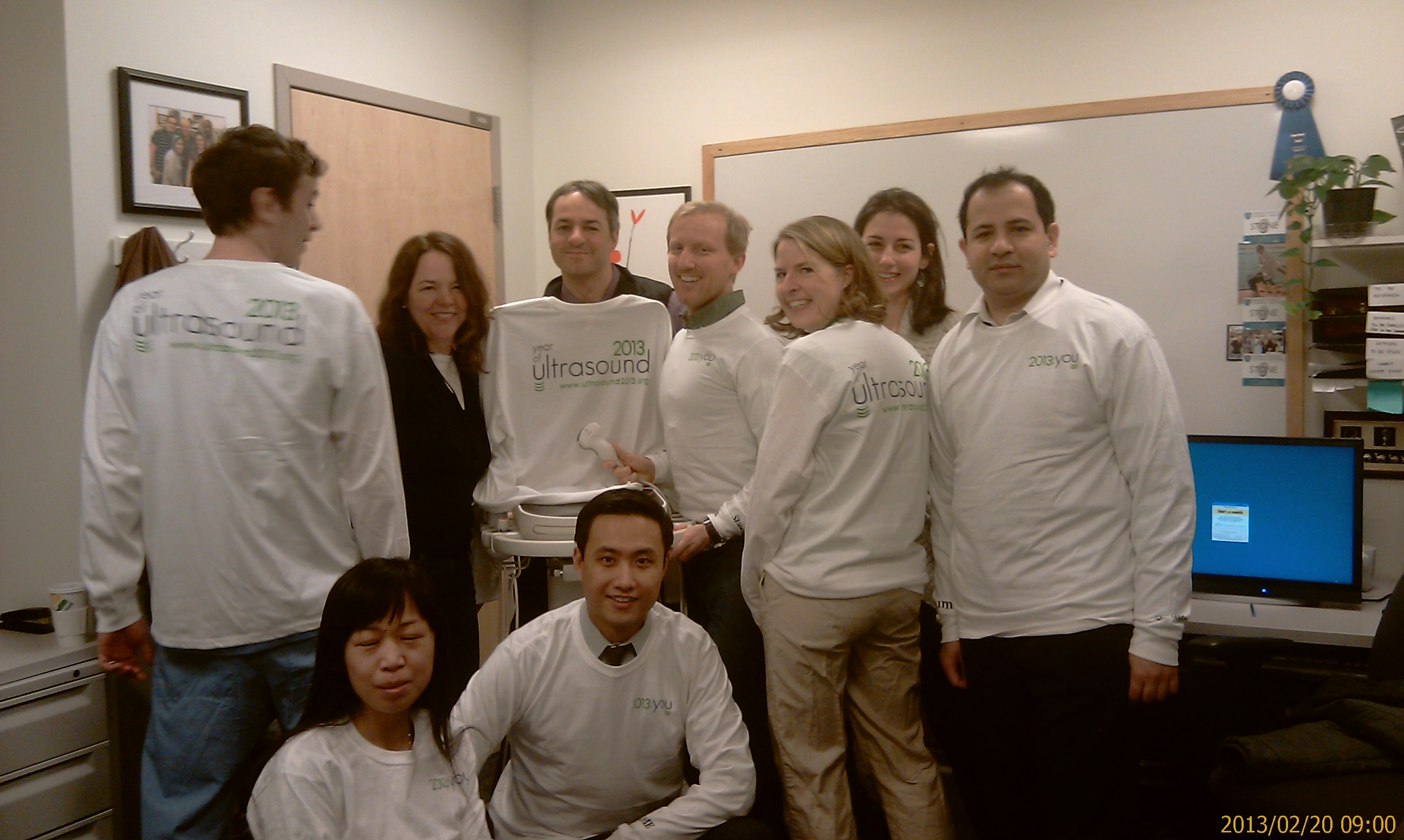 So, in preparation for this event, as discussed with one of my role models, Dr. Richard Hoppmann, for how he incorporated ultrasound into medical education, a curriculum that is described in the Society of US in Med ED (SUSME) website, we thought how fun it would be to get as many people as we know to wear the 2013:YOU T-shirts and post it for everyone to appreciate! He sent us the shirts, the Stanford US team put them on, and had great fun with the photo-shoot! Look out for more folks to post photos like these throughout the week! – if they so dare….